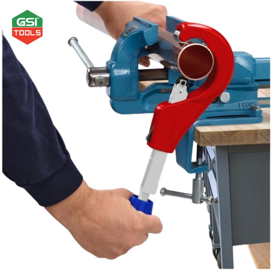 Thân dao được chế tạo từ hợp kim nhôm nhẹ và bền, kết hợp vòng bi kim chất lượng cao tại bánh cắt và con lăn dẫn hướng giúp quá trình cắt mượt, giảm lực thao tác và tăng tuổi thọ dụng cụ. Dao còn tích hợp dụng cụ vát mép để làm sạch mép cắt sau khi gia công, đảm bảo đường ống hoàn thiện và an toàn khi lắp đặt.