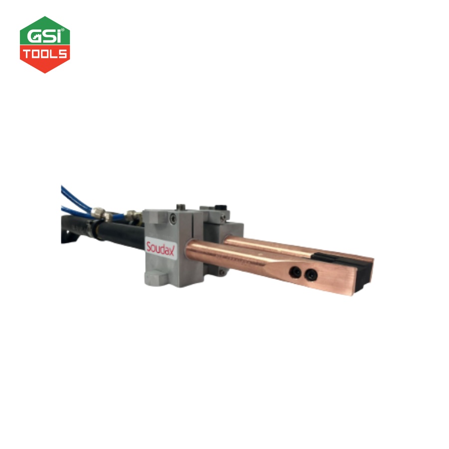 Tay kẹp hàn cơ khí SOUDAX PIMB 30 với hành trình 25 mm, phần nhô 120 mm, kèm điện cực C14 carbon, cáp làm mát 100 mm², đảm bảo hàn bền và chính xác.