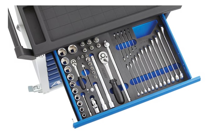 Xe đẩy dụng cụ bao gồm 151 loại dụng cụ trong 7 miếng đệm xốp cứng